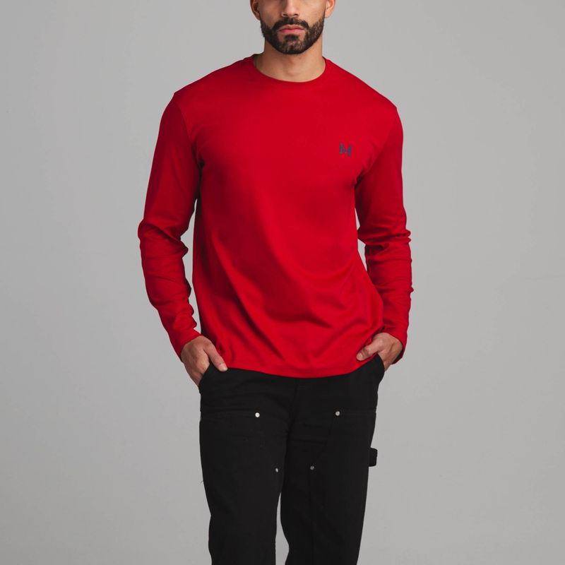 HombrePrendasCamisetasCamiseta Manga Larga Rojo Tierra Arriba
