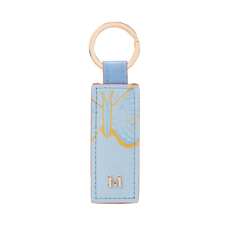 Este accesorio en cuero vacuno destaca por su tonalidad Paraíso, aportando un aire fresco y distintivo a sus objetos personales. Su diseño sencillo y funcional permite organizar las llaves con facilidad, mientras que el mosquetón metálico asegura un agarre firme y práctico para el uso diario.