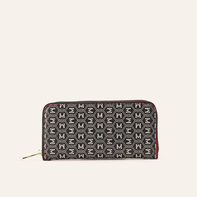 Esta billetera larga en lona sintética con el patrón MH Palenque ofrece una estructura ligera y resistente al uso diario. Su tono negro con detalles en color oro facilita la combinación con diversos accesorios, siendo ideal para entornos profesionales o salidas casuales donde se busca un estilo distinguido y funcional.