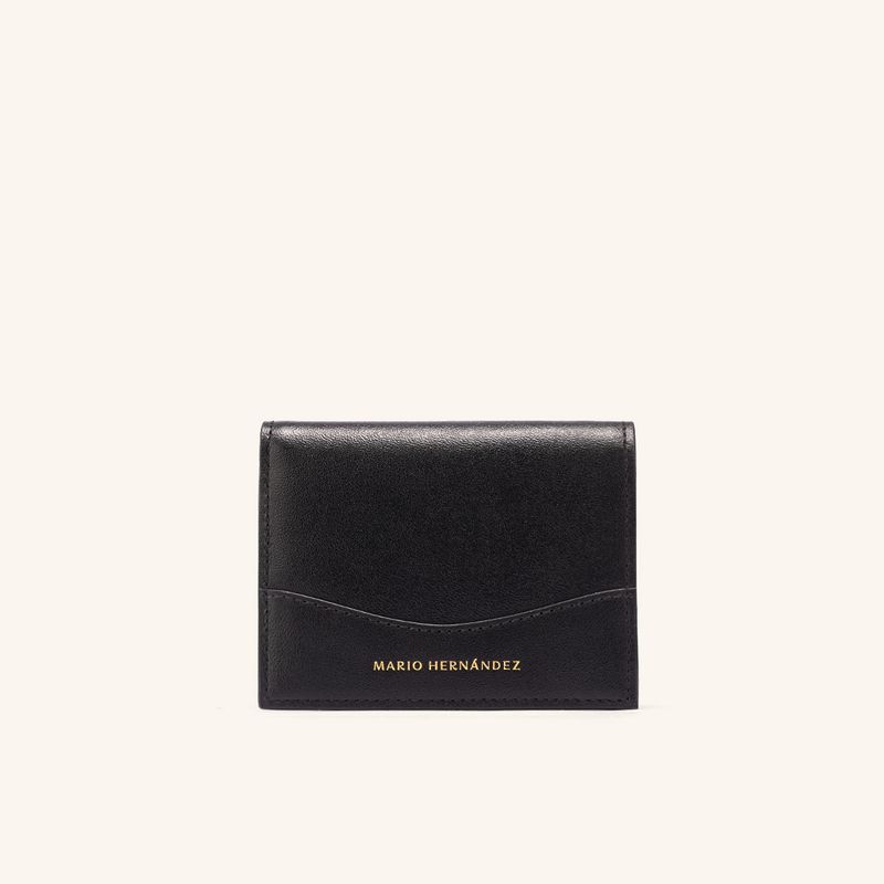 Esta billetera mediana en cuero vacuno negro ofrece un acabado suave y brillante que resalta su silueta limpia. Su diseño funcional incluye tres compartimientos para tarjetas, un espacio para billetes y un monedero integrado, permitiendo una organización eficiente de sus elementos esenciales en un tamaño práctico para el uso diario.