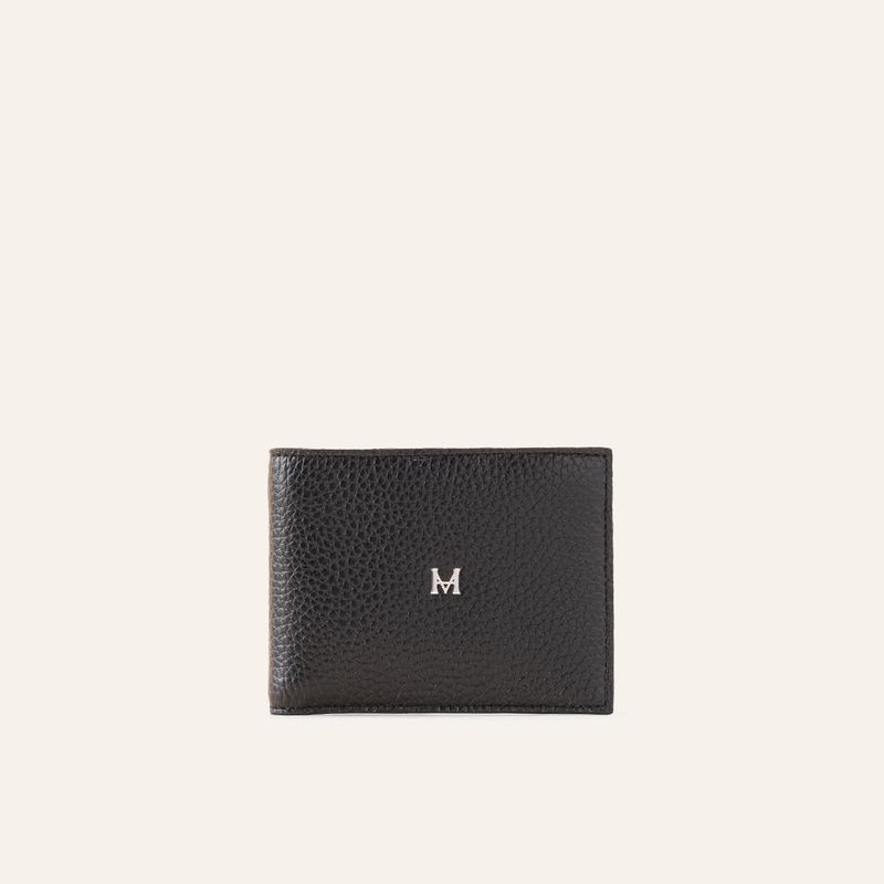 Esta billetera, elaborada en cuero tipo floater, ofrece una textura suave y cómoda al tacto, con un aspecto envejecido natural y un brillo ligero. Su diseño compacto en negro sombra organiza hasta 6 tarjetas y billetes, ideal para el uso diario. Los herrajes en zamac con acabados en níquel escobado complementan su diseño, aportando durabilidad y un toque distinguido.