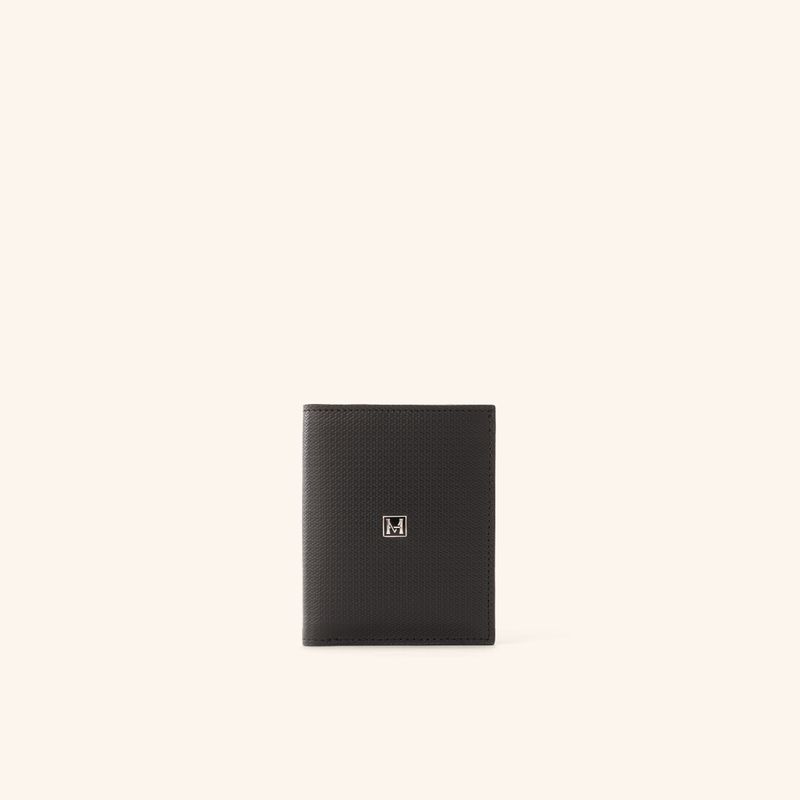 Confeccionada en cuero liso de alta calidad, esta billetera vertical combina la resistencia del material con un sutil brillo. Su diseño en negro y vinotinto aporta distinción, ideal para quienes buscan funcionalidad y estilo. Organiza tarjetas y billetes de forma práctica, adaptándose con facilidad al bolsillo. La placa con el monograma MH destaca sobre el cuero, añadiendo un detalle exclusivo. Es un accesorio versátil para cualquier ocasión, desde reuniones de trabajo hasta eventos casuales, garantizando durabilidad y un acabado elegante.