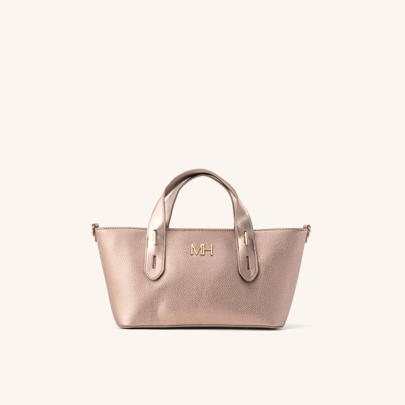 * Herrajes en zamac con acabados en color oro claro y detalles representativos de la marca MH.