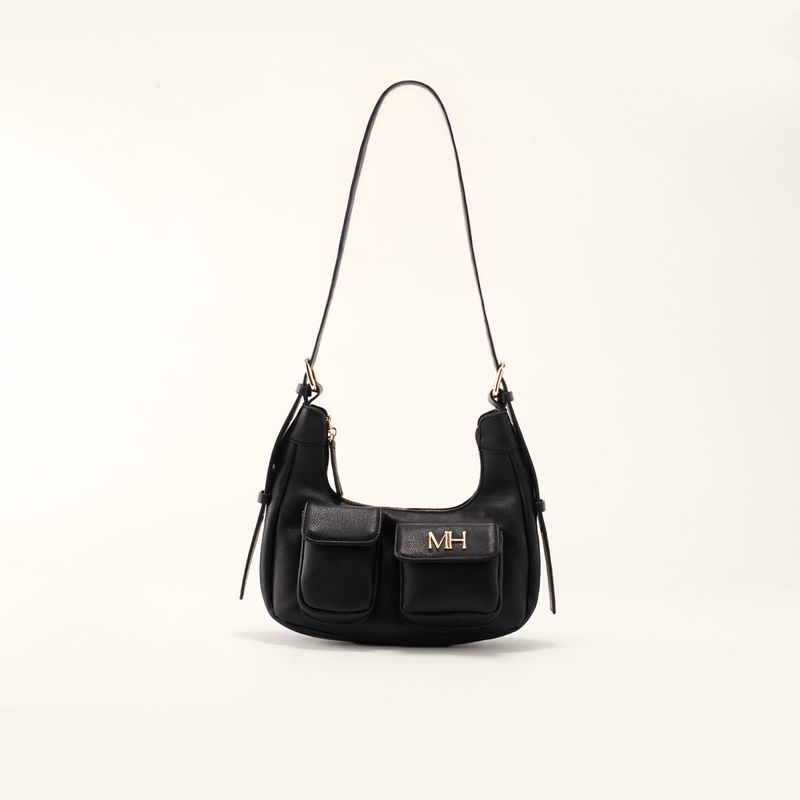 * Herrajes en zamac con acabados en color oro claro y detalles representativos de la marca MH.