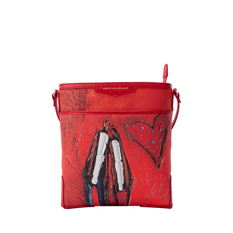Los alargados personajes del artista estadounidense William Debilzan cuentan coloridas historias de amor y amistad. MARIO HERNÁNDEZ las plasma sobre PVC en combinación con charol o cueros grabados, lisos y suaves que le dan vida a verdaderas obras de arte portables, livianas, exclusivas y elegantes. Algunas piezas están decoradas con cristales de Swarovski.