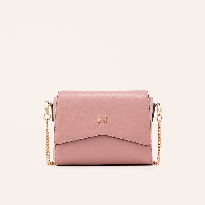Este manos libres en cuero vacuno tipo saffiano destaca por su tono rosado pálido y silueta minimalista. Cuenta con una tapa frontal y cierre de cremallera que asegura el contenido, ofreciendo un espacio organizado para esenciales diarios en un diseño ligero y fácil de llevar.
