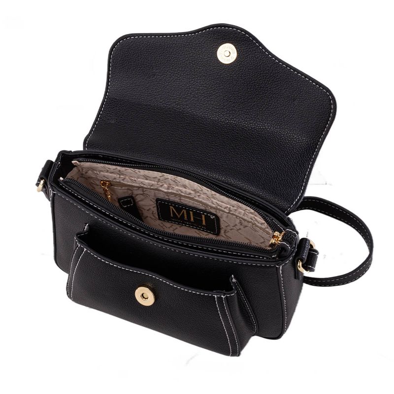 * Herrajes en zamac con acabados en color oro claro y detalles representativos de la marca MH.