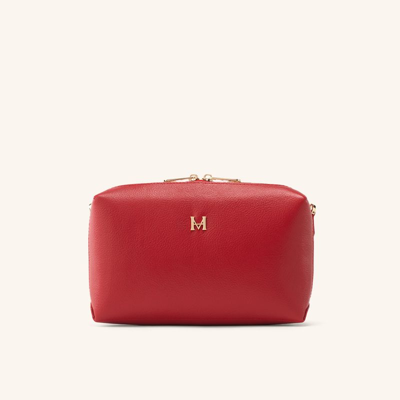 Este bolso manos libres en cuero vacuno texturizado destaca por su ligereza y suavidad al tacto. Su combinación de tonos rojo y gris ofrece un contraste moderno, mientras que el compartimento amplio permite organizar elementos esenciales con comodidad en jornadas urbanas o viajes.