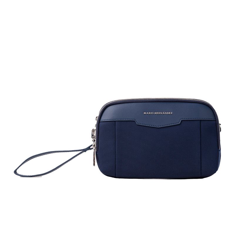 Este manos libres, elaborado en lona de poliéster resistente con detalles en cuero, presenta un diseño estructurado y limpio en tono azul. Su funcionalidad permite llevarlo con atuendos casuales o formales, ofreciendo versatilidad para el uso diario. Los herrajes en zamac con acabados en negro níquel complementan el diseño, aportando un valor agregado de durabilidad y estilo distintivo de MH.