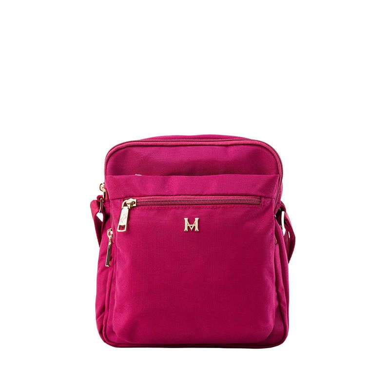 Este manos libres en lona poli<9ster y nailon ofrece una estructura liviana y resistente en un profundo tono burgundy. Su diseño funcional cuenta con m<9ltiples compartimentos con cremallera que facilitan la organización de elementos personales, mientras que la reata ajustable permite un porte cómodo durante todo el día.