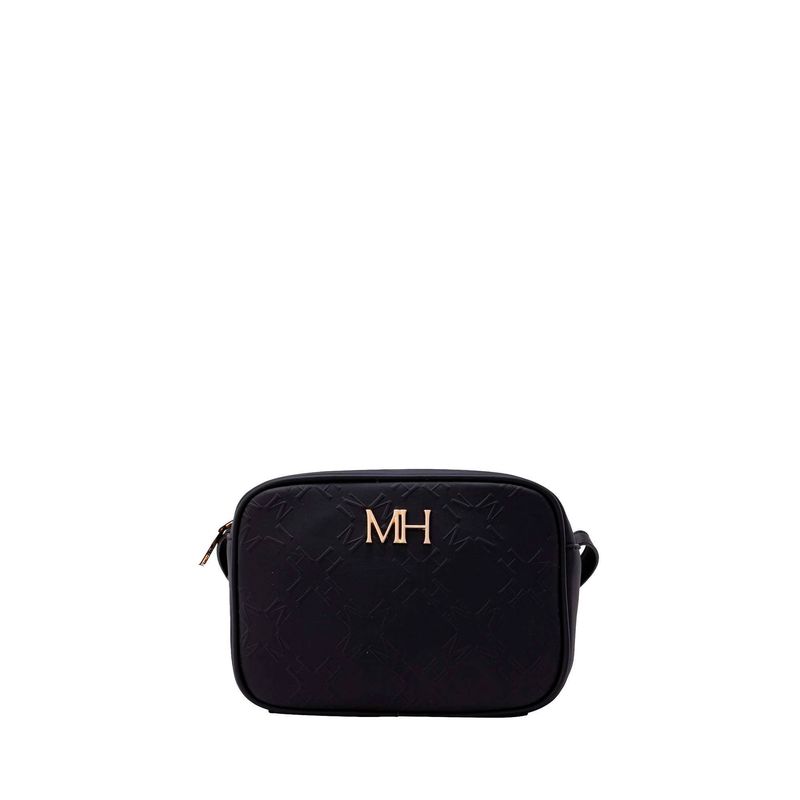 Ideal para combinar con blazers o atuendos casuales modernos, este accesorio destaca por sus herrajes metálicos dorados y el logo MH, que aportan un acabado elegante y duradero para el uso diario en la ciudad.