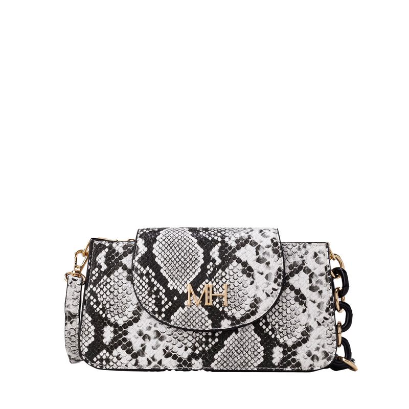 Esta colección plantea una estética sofisticada, atemporal y muy glamurosa, bolsos aspiracionales llenos de detalles que reflejan toda la identidad Mario Hernández bajo la marca MH. Predominan los detalles como foulares, charms, prints y cadenas, donde los satchels los bolsos de mano y manos libres son los protagonistas.