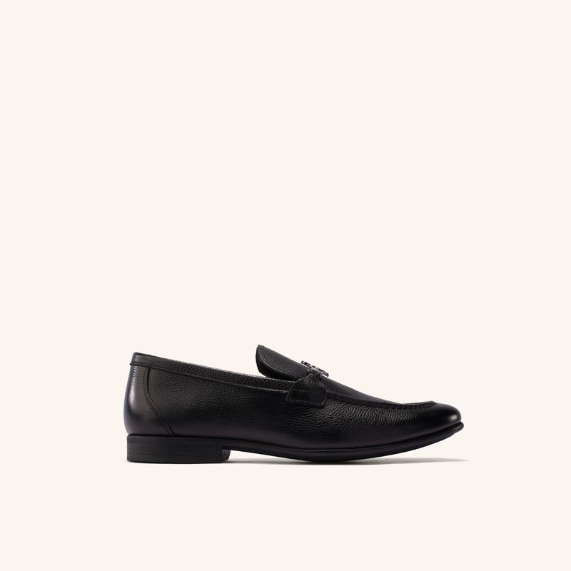Elaborado en cuero negro de origen brasileño con acabado liso, este mocasín ofrece una estructura flexible y un interior abullonado que prioriza la comodidad durante el uso prolongado. Su diseño de silueta limpia se adapta con facilidad a trajes formales de dos piezas o atuendos de oficina, proporcionando una imagen distinguida y profesional.