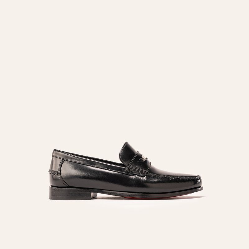 Este mocasín en cuero vacuno negro ofrece una silueta clásica que equilibra comodidad y distinción. Su diseño incorpora un espacio en el empeine con una moneda contramarcada removible, la cual oculta otra pieza en un tono diferente para intercambiar según su preferencia. Los herrajes en zamac complementan el calzado con un acabado duradero y elegante. Ideal para ocasiones formales o casuales, este modelo se adapta fácilmente a trajes sastre o pantalones chinos, aportando versatilidad al uso diario.