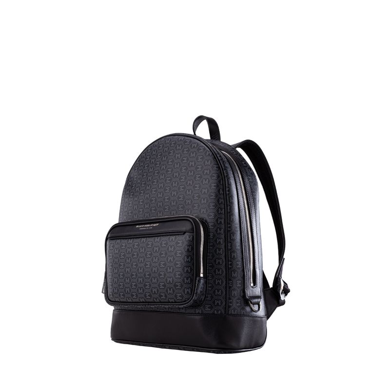 Este morral, confeccionado en lona sintética texturizada con el patrón exclusivo MH Palenque y detalles en cuero vacuno liso, ofrece una construcción limpia y liviana. Su diseño en tono Ébano lo hace versátil para el hombre urbano moderno que busca comodidad y estilo en su día a día, adaptándose a cualquier ritmo de vida. Los herrajes en zamac con acabados en níquel y negro níquel complementan su estética funcional.