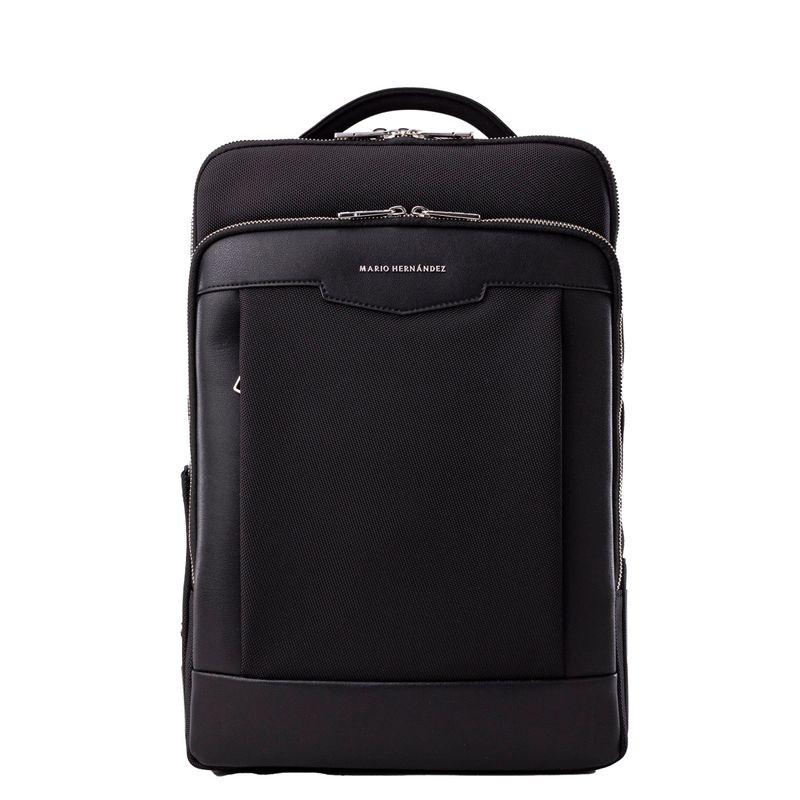 Elaborado con una resistente lona de poliéster y detalles en cuero, este morral negro ofrece un diseño estructurado y limpio. Su funcionalidad se adapta a cualquier ocasión, desde atuendos casuales hasta formales, gracias a su versatilidad y estilo. Los herrajes en zamac con acabados en color negro níquel complementan el diseño, aportando un valor agregado de durabilidad y distinción.