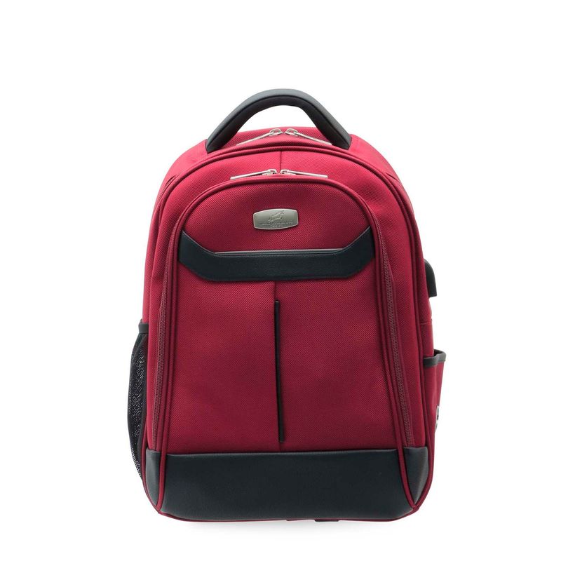 Este morral en lona con detalles en cuero vacuno ofrece una estructura ligera y resistente para el ritmo ejecutivo. Su diseño en color rojo vibrante se complementa con dos compartimentos principales de cremallera que facilitan la organización de dispositivos y documentos, mientras que su forma curva optimiza el espacio sin perder la elegancia.