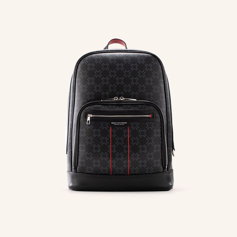 Este morral en lona sintética negra presenta el patrón MH Monograma, ofreciendo una estructura liviana y resistente para el uso diario. Su diseño funcional incluye un compartimento principal amplio con cierre de cremallera y bolsillos internos de algodón que facilitan la organización de sus pertenencias esenciales.