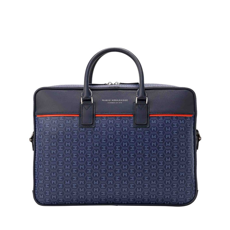 Esta papelera, elaborada en lona sintética texturizada con el patrón exclusivo MH Palenque y detalles en cuero vacuno liso, ofrece una construcción limpia y liviana. Su tonalidad cobalto aporta un toque de color distintivo a cualquier espacio. Es ideal para el hombre urbano moderno que busca funcionalidad y estilo en su entorno, complementando su ritmo de vida con un diseño cómodo y elegante. Los herrajes en zamac con acabados en níquel y negro níquel añaden un valor duradero y un toque sofisticado.