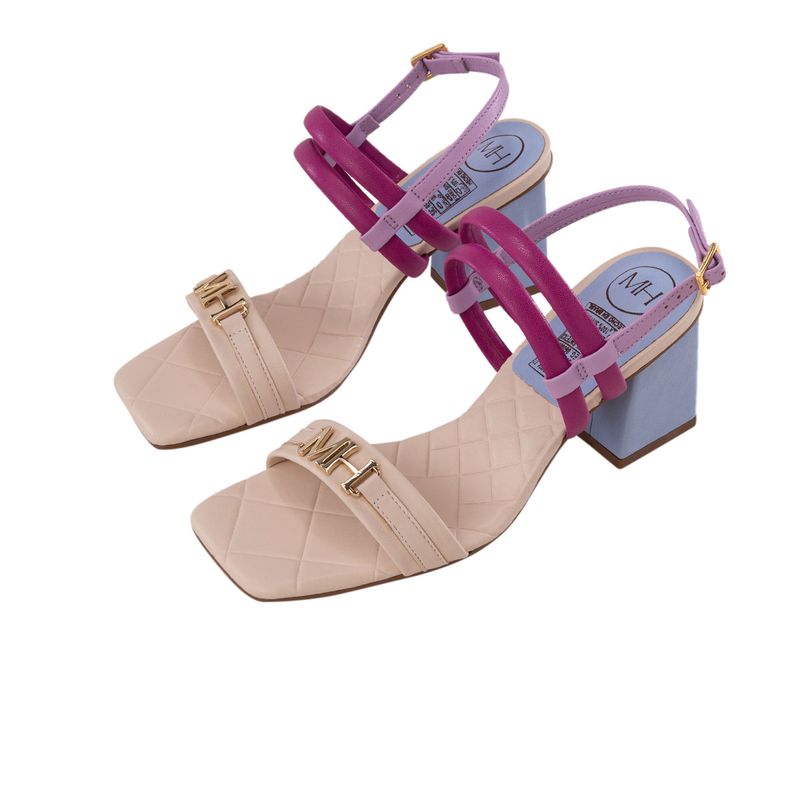 El diseño cuenta con un tacón de 6.5 cm que proporciona estabilidad, mientras que los herrajes exclusivos en zamac con acabado en color oro claro añaden un detalle elegante y funcional. Su estructura abierta es perfecta para climas cálidos, asegurando frescura sin perder la sofisticación característica de MH.