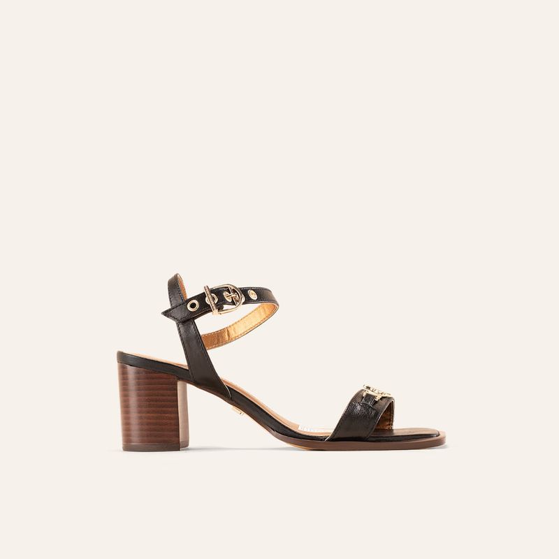 Estas sandalias de cuero vacuno en tono negro ofrecen una sensación de suavidad y firmeza al caminar. Su diseño abierto con tacón medio de 6,5 cm proporciona estabilidad y comodidad, ideal para jornadas laborales o eventos sociales que exigen un estilo distinguido sin sacrificar el bienestar.